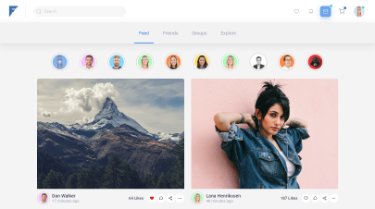 Friendkit provides a lot of reusable UI elements to build your app. Use this amazing set of components to create a unique web application